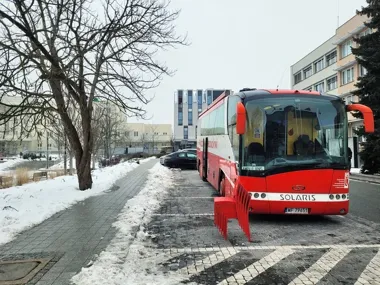 - Wejście do krwiobusa: od strony skweru Kisiela.