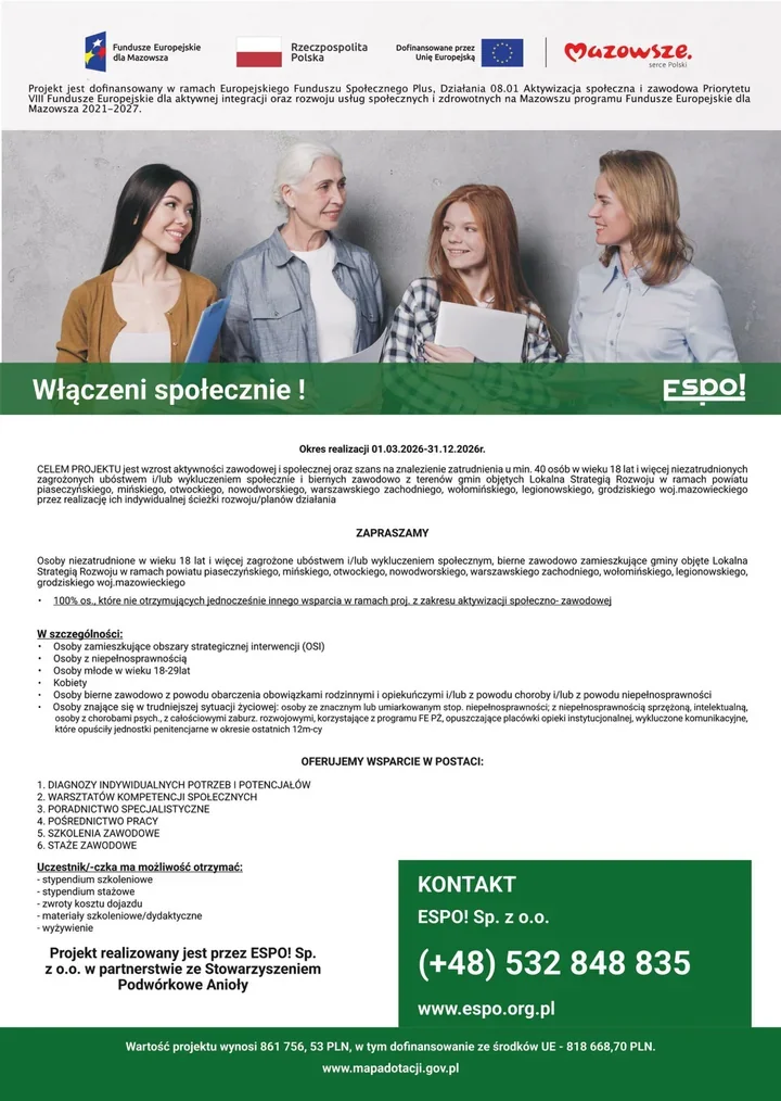 Włączeni społecznie – projekt dla osób wykluczonych i poszukujących pracy