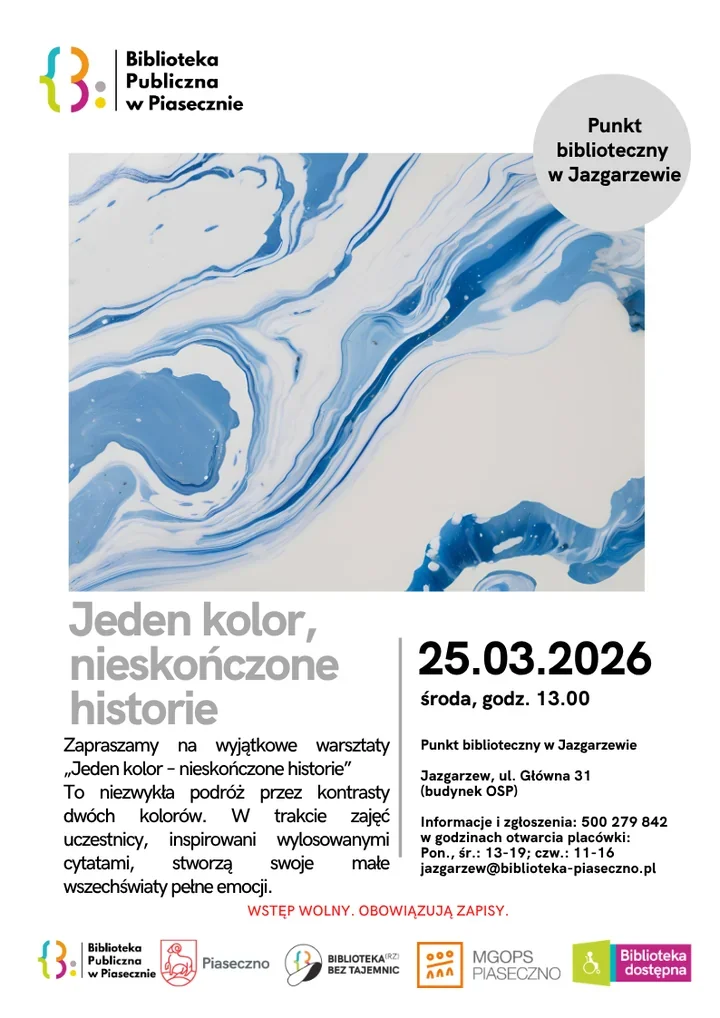 W takich spotkaniach najciekawsze bywa to, że sztuka przestaje wyglądać jak coś odległego. W Jazgarzewie ma być prosto, twórczo i bez zadęcia - z kolorem, cytatem i przestrzenią na własny pomysł. A to często wystarcza, żeby po wyjściu z bibliotecznej sali spojrzeć na malowanie już trochę inaczej 🙂