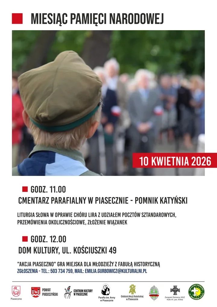 W Piasecznie ten sam dzień zacznie się od powagi, a skończy na historycznej grze dla młodych. 10 kwietnia 2026 roku najpierw zabrzmi liturgia słowa przy Pomniku Katyńskim, a później uczestnicy przeniosą się do Domu Kultury przy ul. Kościuszki 49, gdzie historia wybrzmi już w zupełnie innym rytmie. To program, który łączy pamięć, edukację i zaangażowanie bez szkolnego zadęcia.