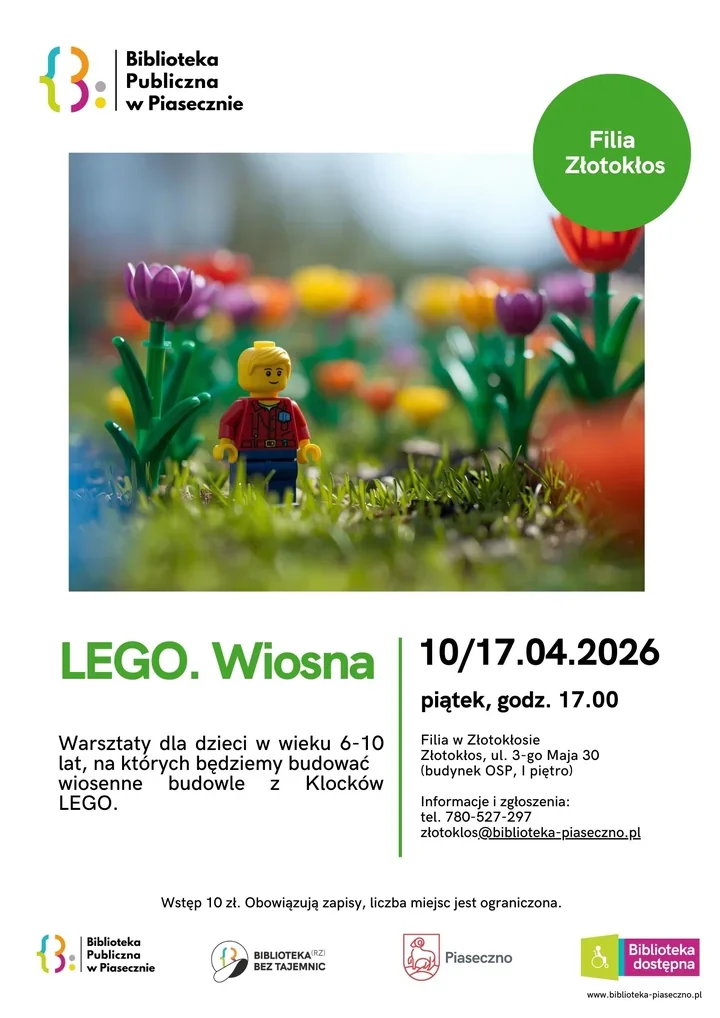 W Filii Złotokłos biblioteczne stoły zamienią się w małe stanowiska konstruktorów, a klocki LEGO posłużą do zbudowania własnej wersji wiosny. To propozycja dla dzieci, które lubią działać rękami, testować pomysły i wracać do domu z czymś, co naprawdę powstało z ich wyobraźni. 🌷🧱