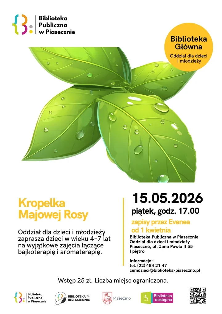 Majowy wieczór w Piasecznie zapowiada się spokojnie i bardzo po dziecięcemu. „Kropelka Majowej Rosy” to warsztaty, które zamiast pośpiechu stawiają na łagodną rozmowę, bajkowy klimat i oswajanie emocji w bezpieczny sposób 🌿