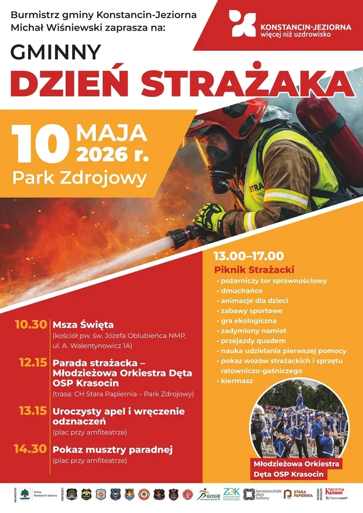 W Parku Zdrojowym tego dnia nie zabraknie mundurów, orkiestry i dziecięcego gwaru. Konstancin-Jeziorna przygotowuje obchody Dnia Strażaka, w których oficjalna ceremonia ma sąsiadować z piknikiem pełnym ruchu, pokazów i rodzinnych emocji. To będzie jedno z tych wydarzeń, gdzie obok odznaczeń i awansów równie ważne stają się spotkanie, wspomnienie i zwykła wdzięczność wobec druhów z miejscowych jednostek.