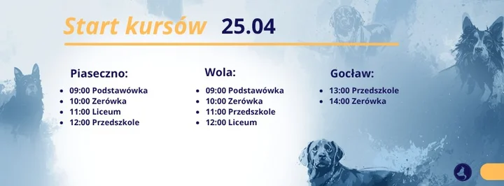 Miejsce: Piaseczno, Warszawa, Polska — zajęcia odbywają się w Piasecznie, na Woli i Gocławiu