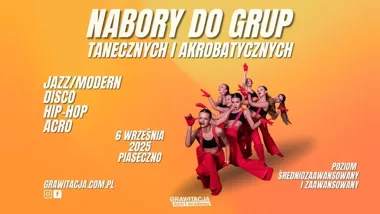 Grawitacja Sport Academy organizuje nabory do grup dla osób z doświadczeniem w tańcu i akrobatyce. Podczas jednego spotkania uczestnicy przejdą ocenę umiejętności, na podstawie której zostaną przydzieleni do odpowiednich grup treningowych: ACRO (średniozaawansowany/zaawansowany), FRESH (grupy taneczne średniozaawansowane) oraz CREW (grupy taneczne zaawansowane). Oferta obejmuje intensywne treningi techniczne, pracę nad choreografią, rozwój indywidualnych umiejętności oraz możliwość udziału w pokazach i zawodach.